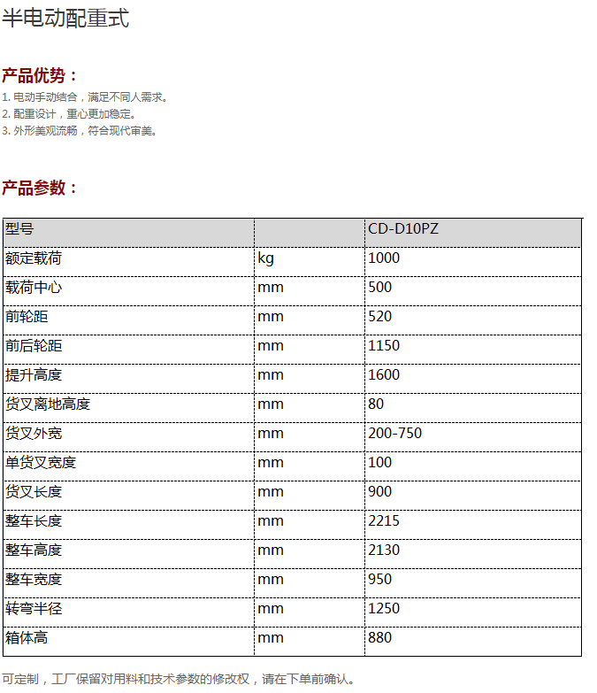 當(dāng)前位置:首頁>>產(chǎn)品展示>>半電動堆高車>>CDPZ10系列1噸半電動配重式堆高車